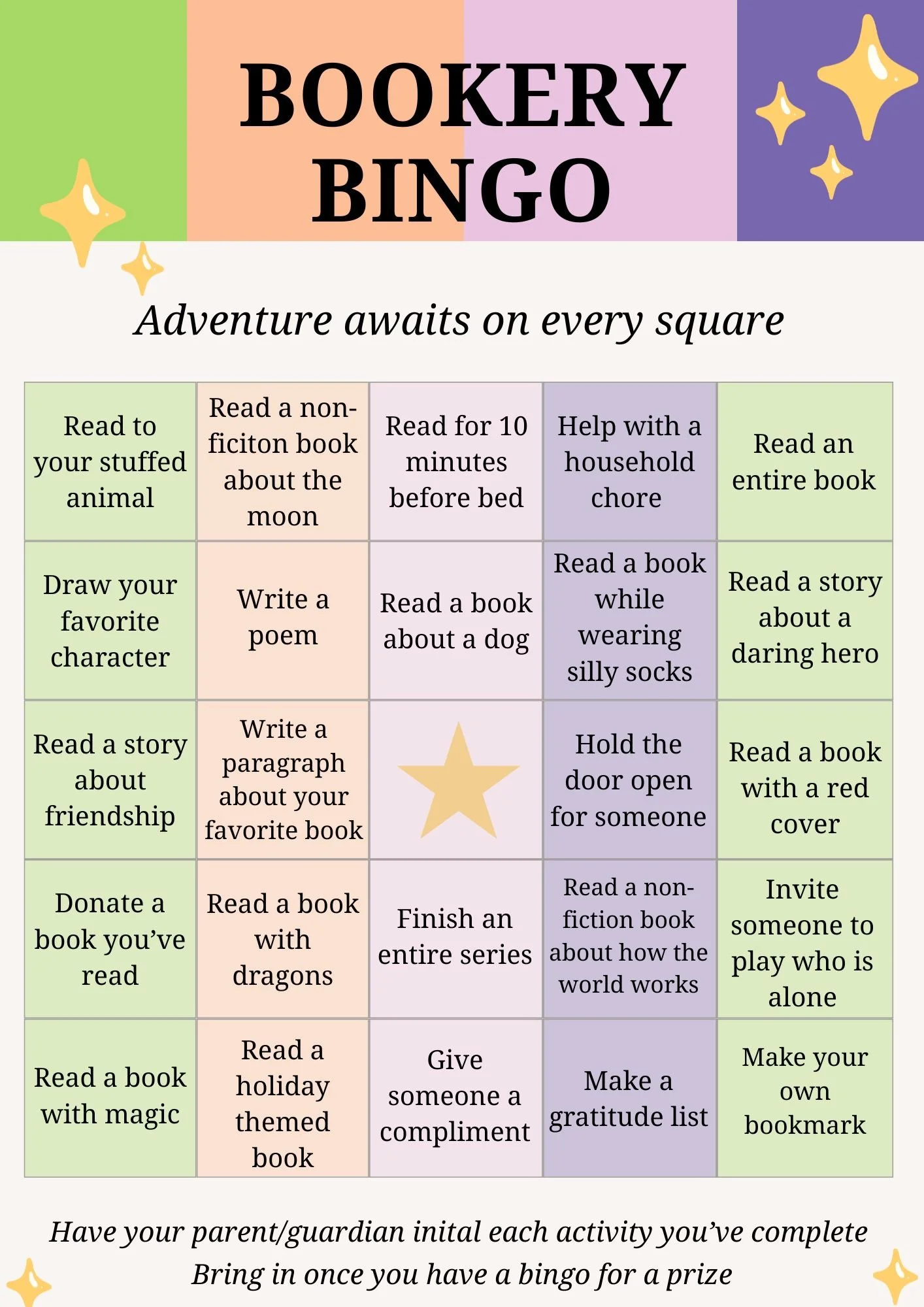 This BINGO card encourages kids to not only engage with reading but with the house and their community.